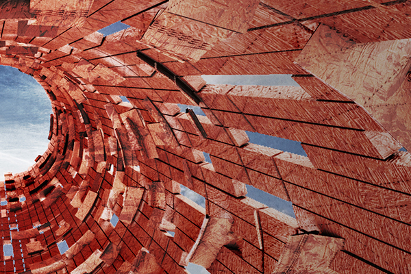 • Optional low-voltage LED lights embedded between the panels would be solar powered. At night, they appear as a spiraling constellation of lights from within the tótem only and would not contribute to light pollution.